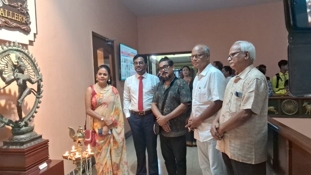 কলকাতা – শুভ ঘোষ রিপোর্ট – গোলপার্ক রামকৃষ্ণ মিশনে মিউজিয়াম আর্ট গ্যালারিতে একটি প্রদর্শনী সংগ্রহশালা আয়োজন করা হয়। পাঁচদিনের শিল্প প্রদর্শনীর আয়োজক নটরাজ আর্ট গ্রুপ এবং সহযোগিতায় জে সি মেমোরিয়াল ইন্টারন্যাশনাল স্কুল উদ্বোধনে উপস্থিত বিশিষ্ট শিল্পকলা নিয়ে বিস্তারিত আলোকপাত করেন।আজকে মূলত এই চিত্র প্রদর্শনী কর্মশালায় উদ্বোধনে উপস্থিত ছিলেন শিল্পী সমীর আইচ, শিক্ষক অরুনোদয় মন্ডল, অনির্বাণ বিশ্বাস,শিল্পী সনাতন দিন্ডা,নীলাদ্রি রায়,শম্পা ব্যানার্জি ,অতনু মন্ডল এনাদের উপস্থিতিতে প্রদীপ প্রজ্জলন করে শুভারম্ভ হয়।